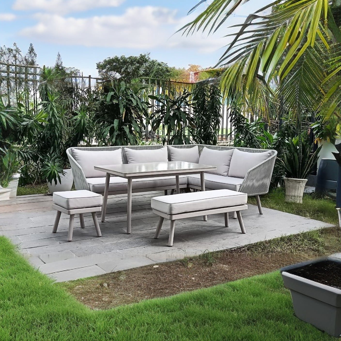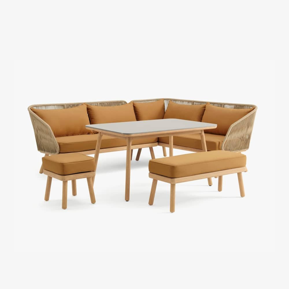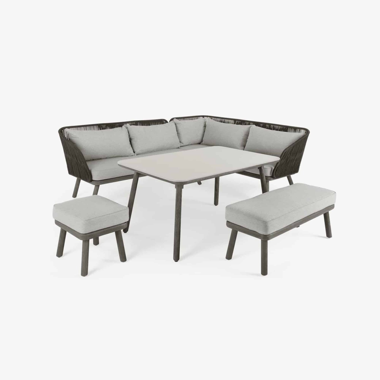 Bộ Sofa Góc | đan dây/gỗ đàn hương | xám trắng
